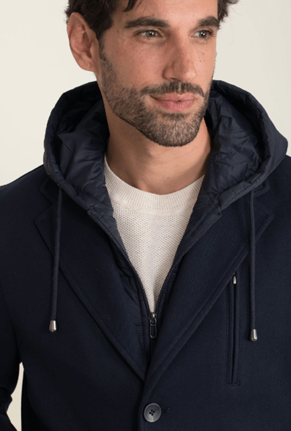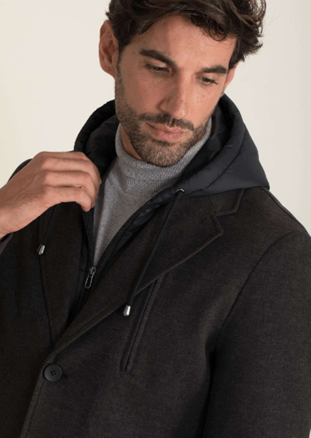 Es un abrigo ideal para acompañar multitud de looks, haciéndilo un imprescindible en tu guardarropa. Su tejido de alta calidad asegura su durabilidad y su comodidad en todo momento. Transforma tu estilo con este abrigo con pecherín y capucha desmontables.