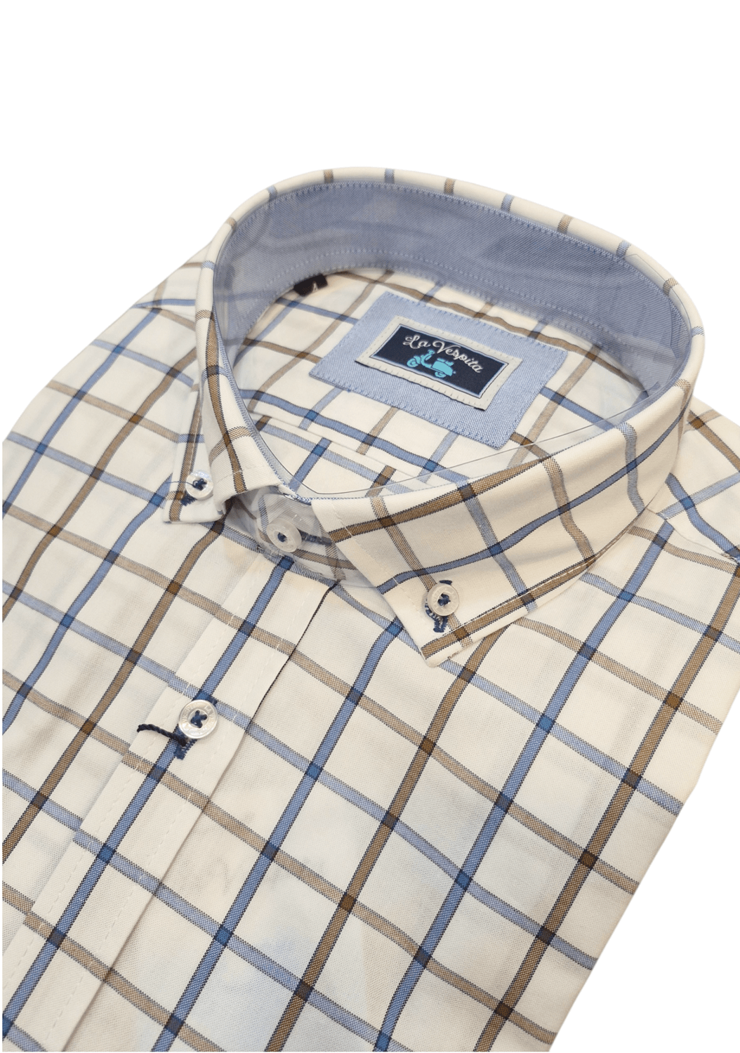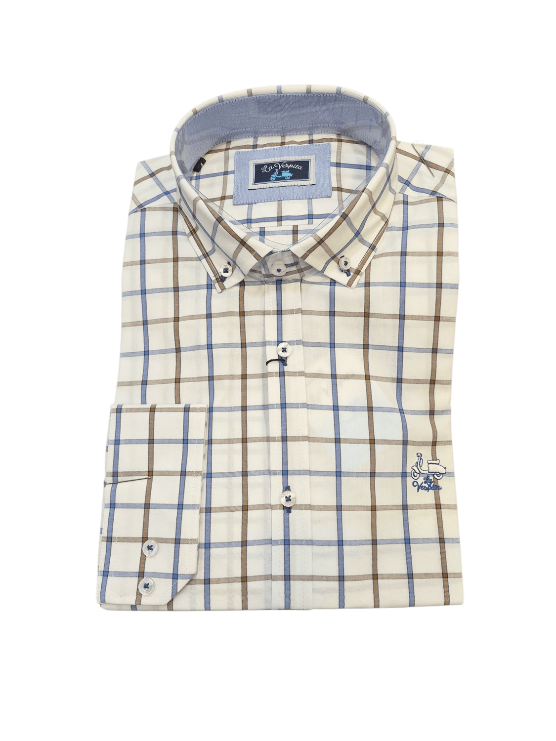 Su patrón de cuadro ventana aporta un toque moderno y sofisticado, haciendo de cada aparición una declaración de estilo. La calidad de La Vespita asegura que esta camisa se mantendrá en tu armario por mucho tiempo, siempre lista para hacer una impresión duradera.