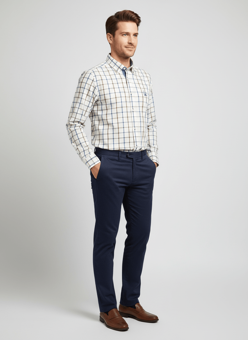 Descubre el equilibrio perfecto entre comodidad y estilo con nuestra Camisa Slim Fit Cuadro Ventana de La Vespita. Su diseño ajustado pero cómodo subraya tu figura sin sacrificar confort, lo que la hace ideal tanto para ocasiones casuales como formales.