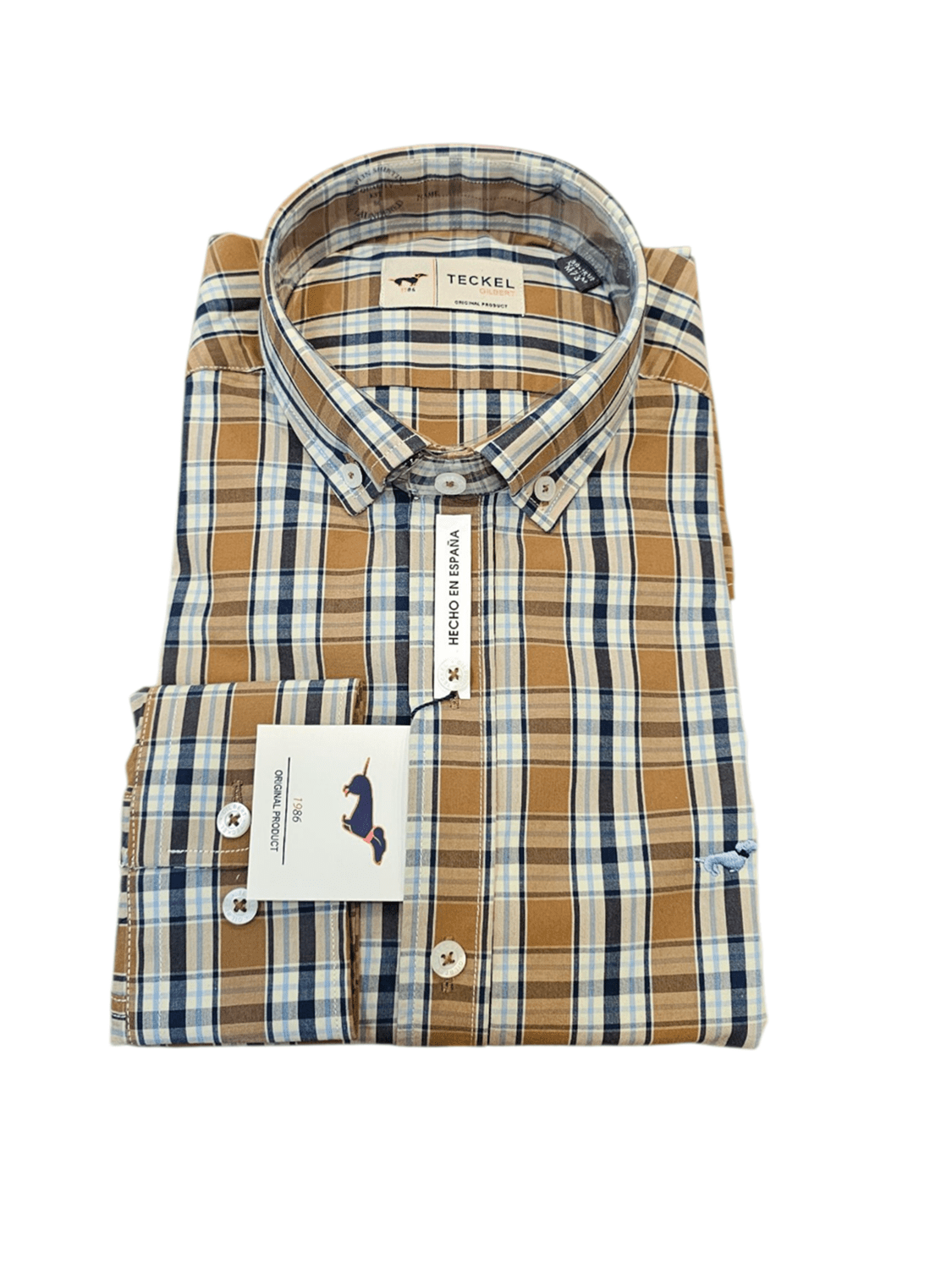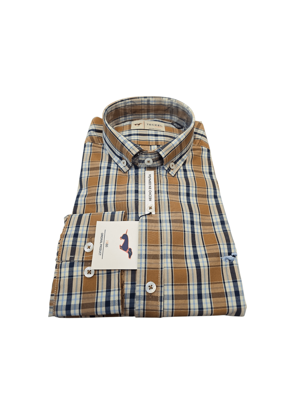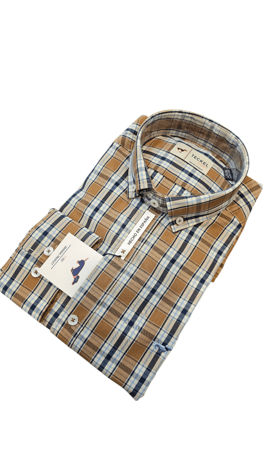 Descubre la camisa de cuadros Gilbert Teckel, una prenda versátil que te garantiza un look informal y elegante. La camisa es de corte semientallado y sin pinza en la espalda, lo que proporciona una silueta pulida pero relajada.