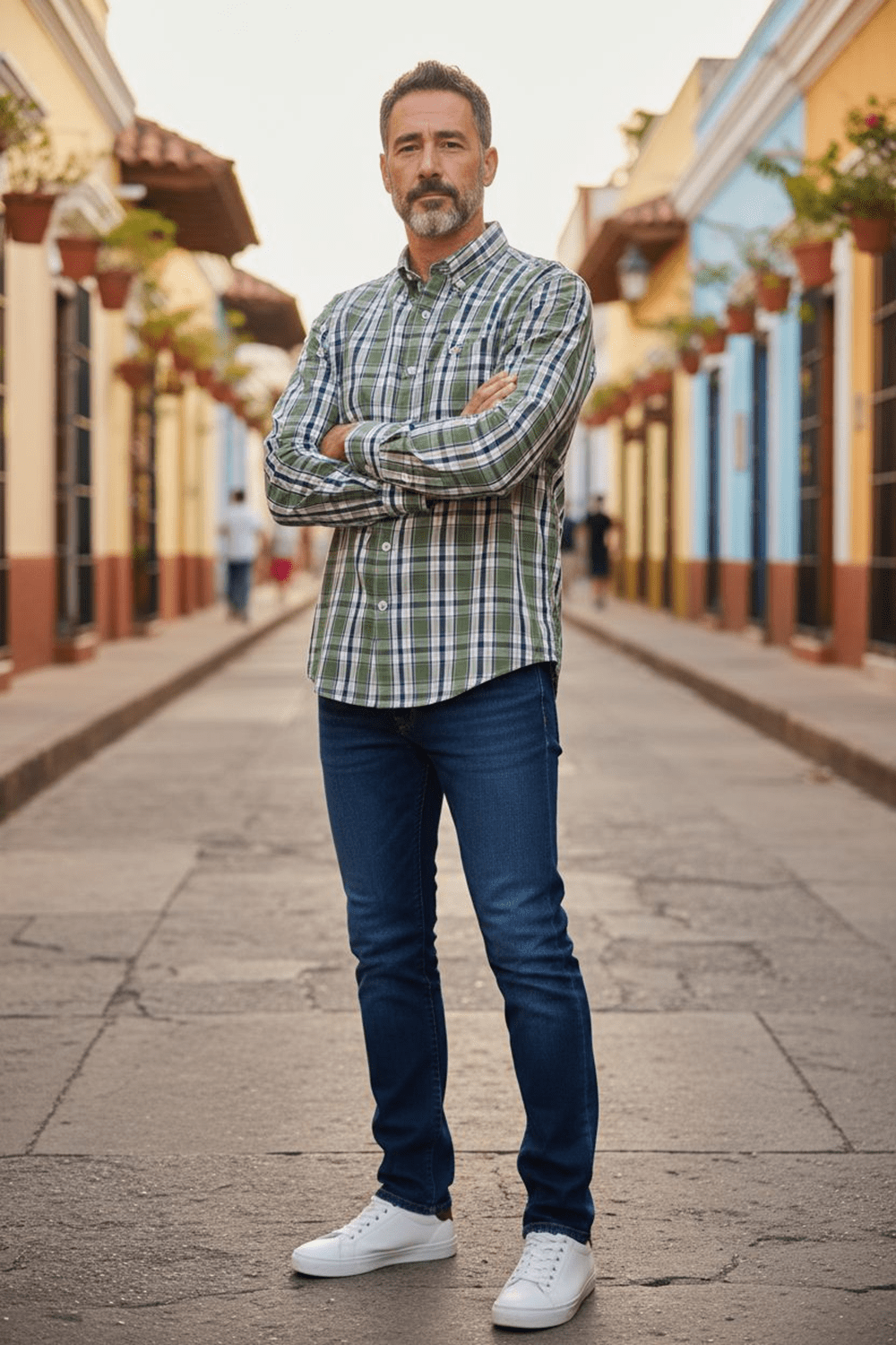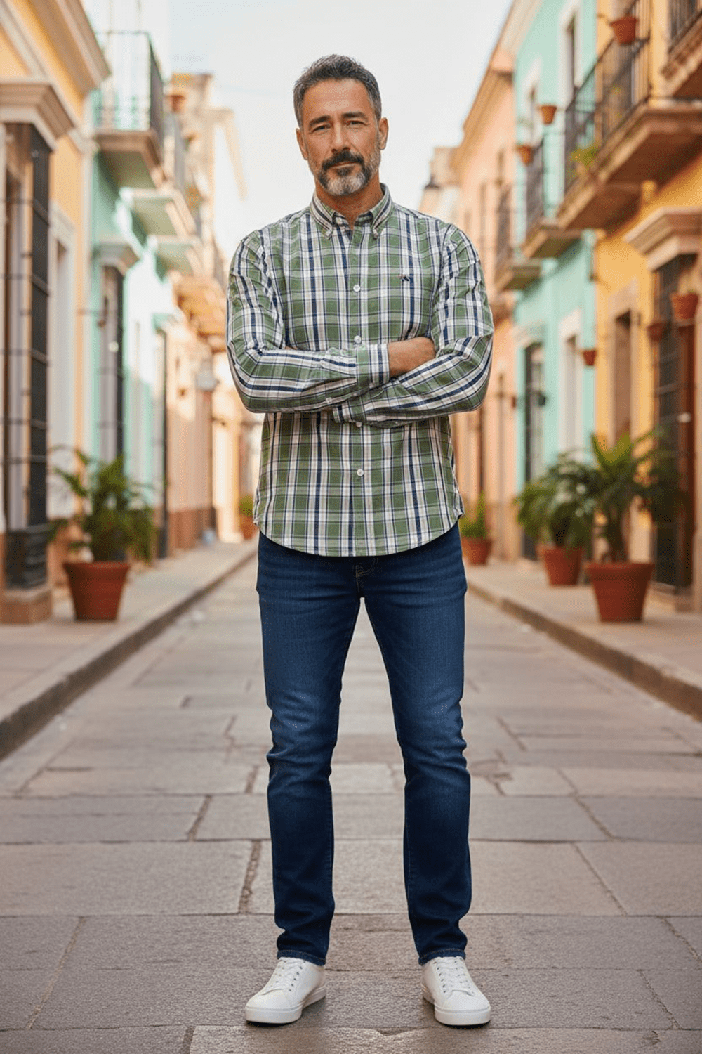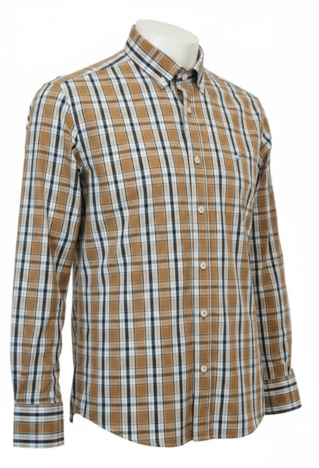 Descubre la camisa de cuadros Gilbert Teckel, una prenda versátil que te garantiza un look informal y elegante. La camisa es de corte semientallado y sin pinza en la espalda, lo que proporciona una silueta pulida pero relajada.