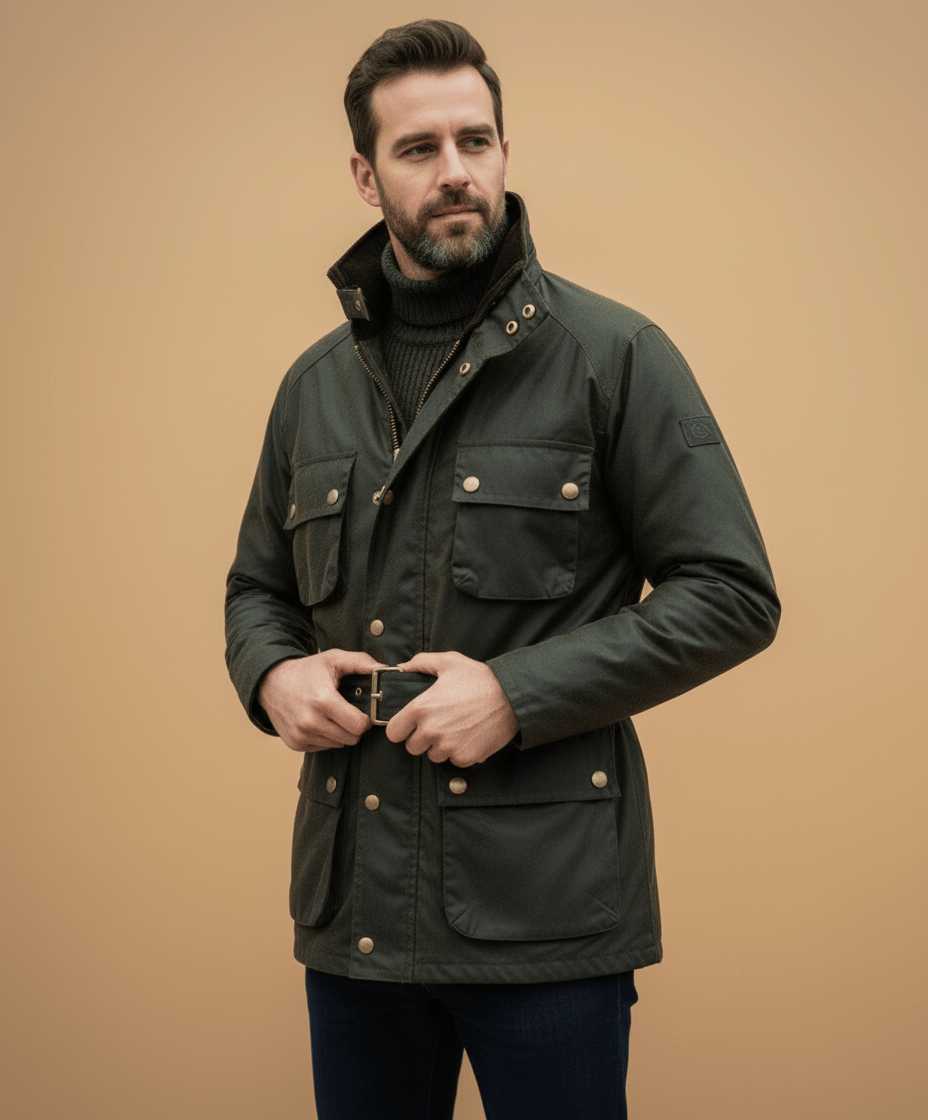 Además, incorpora bolsillos que aumentan su practicidad y comodidad. Su estilo encerado proporciona un acabado elegante y duradero.