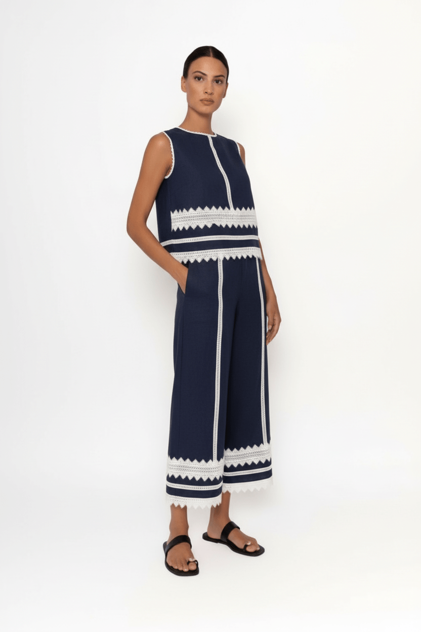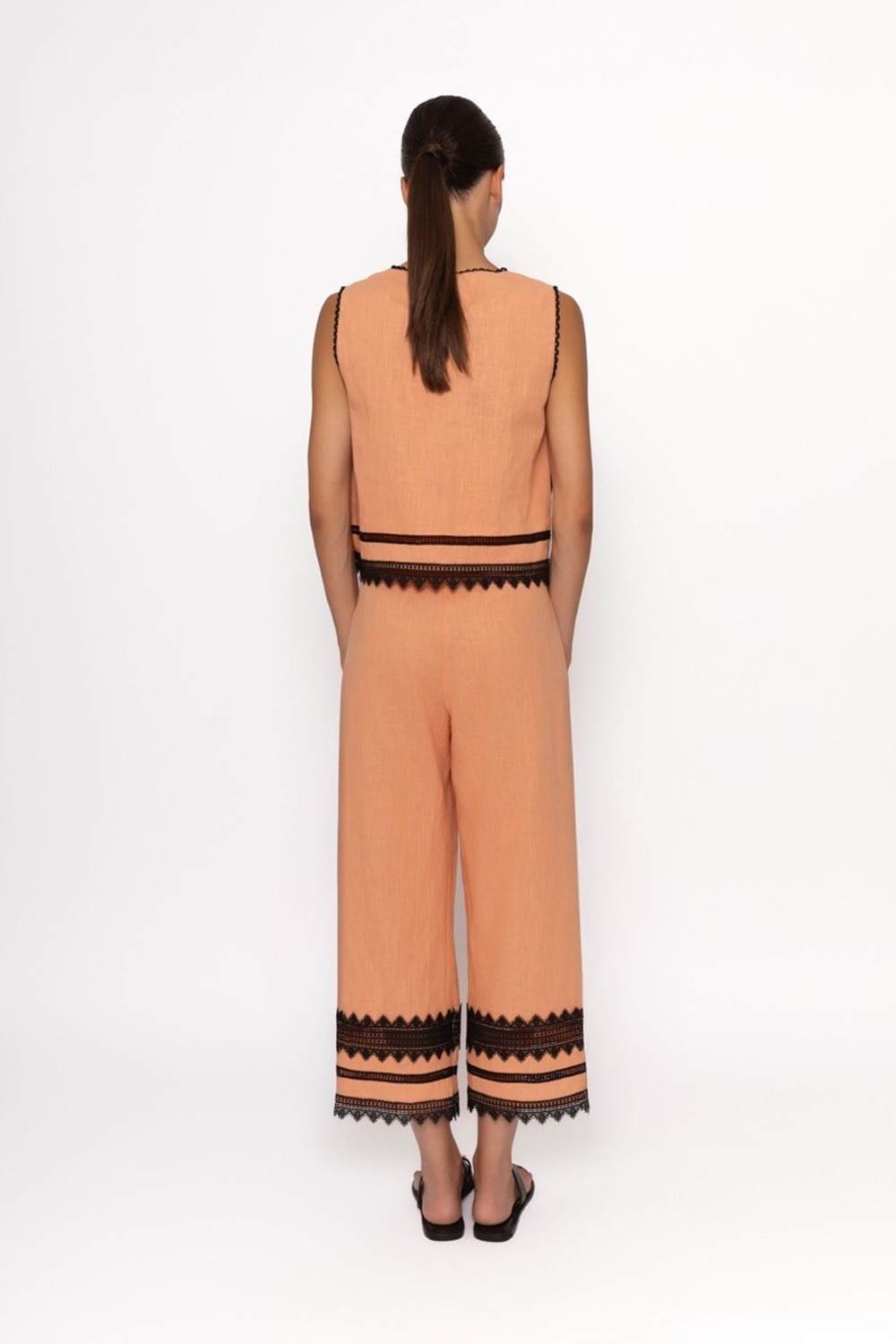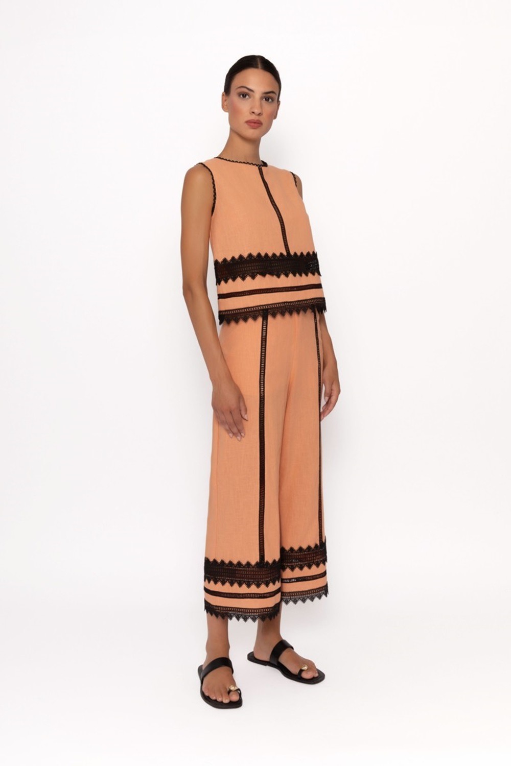 El top, con su diseño sin mangas, es ideal para los días más calurosos, mientras que el pantalón con su corte favorecedor se adapta a cualquier tipo de figura, proporcionando un ajuste cómodo. Completa el look con tus accesorios favoritos para un outfit verdaderamente espectacular.