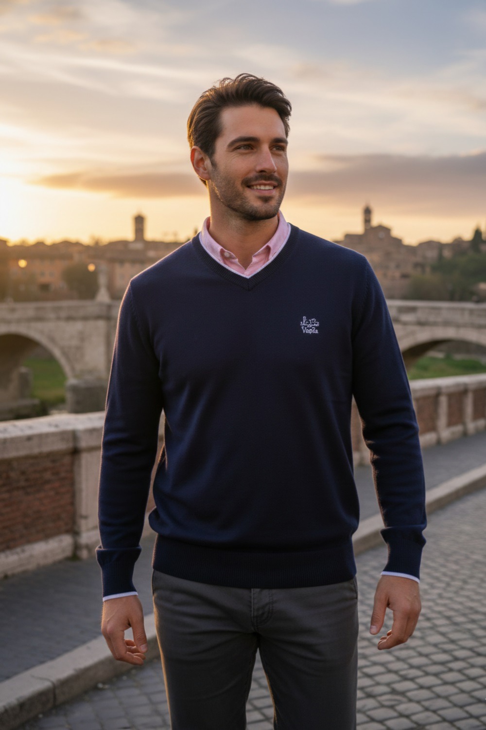Enriquece tu colección de jerséis con nuestro Jersey Pico La Vespita, una prenda indispensable en tu armario. Este elegante jersey es perfecto para combinar con jeans o una falda para lograr un look rápido y chic.