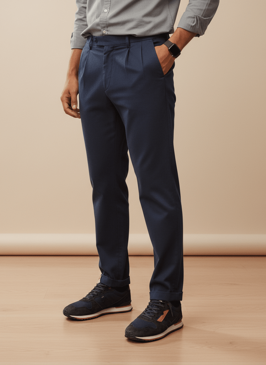 Nuestro Pantalón Confort Fit de Algodón con Pinzas, Cintura Corsario y Ceñidores Laterales es una opción confortable y fashion para cualquier hombre moderno. Esta prenda se caracteriza por seguir la línea confort fit, garantizando el máximo confort sin sacrificar en estilo. El diseño incluye dos pinzas, que le añaden una elegancia casual y relajada perfecta para el día a día.