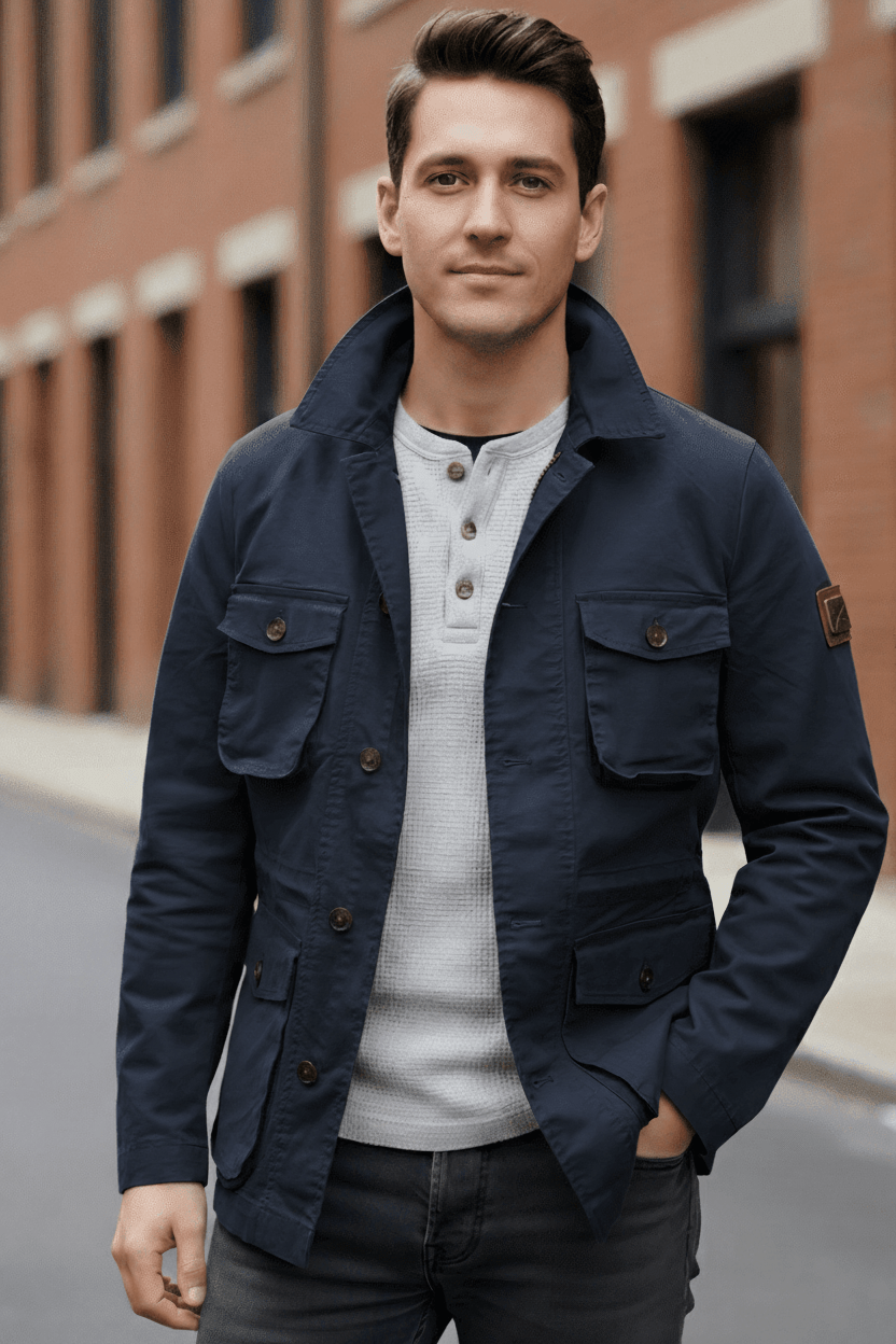 Apuesta por el estilo juvenil y desenfadado con nuestra Sahariana SLIM FIT Cargo de Algodón Elástico ideal Primavera. Este abrigo, con su corte militar selecto, es una opción versátil tanto para looks diarios como para ocasiones más especiales. Destaca por no ser excesivamente gruesa, lo que garantiza su comodidad y facilidad para llevar.