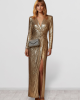 Deslumbra en cada habitación y muestra tu sentido del estilo audaz con este vestido deslumbrante y atemporal.