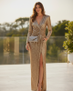 Deslumbra en cada habitación y muestra tu sentido del estilo audaz con este vestido deslumbrante y atemporal.