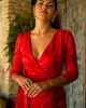 Los flecos largos que caen con gracia añaden un elemento de sofisticación, mientras que el amarre en la cintura asegura un ajuste ceñido y personalizado. El vestido Luz está disponible en dos colores impactantes: marfil y rojo, asegurando que siempre haya una opción para cualquier ocasión.
