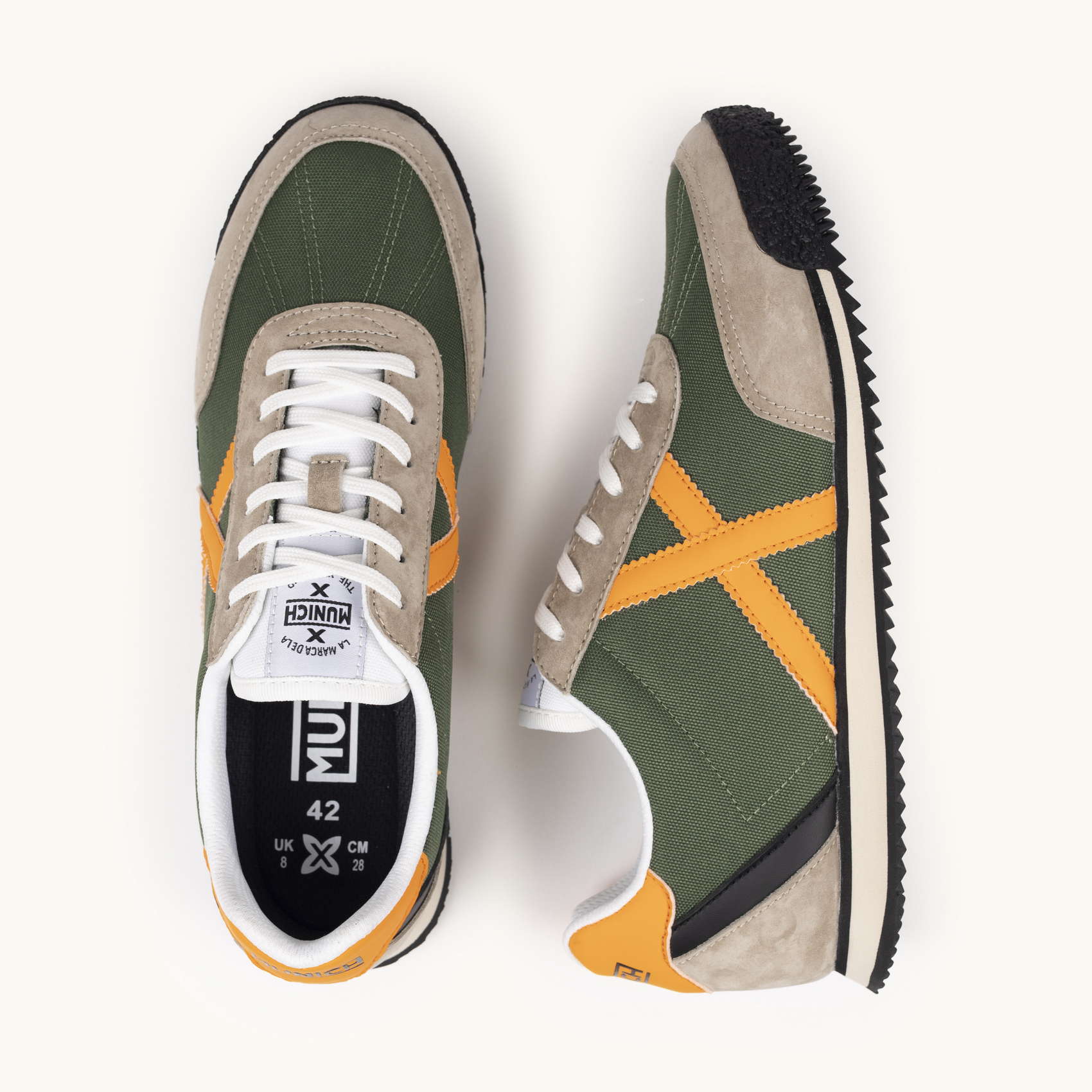 Zapatillas clasicas y planas Verde Caqui y Naranja MUNICH RIBER 14