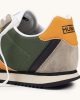 Estas deportivas capturan la estética aventurera y retro mediante una combinación cromática orgánica que destaca en cualquier entorno. El cuerpo principal está confeccionado en un resistente tejido técnico verde caqui, reforzado con piezas de serraje en un suave tono tierra y rematado con la distintiva cruz lateral en un naranja vibrante que coordina con el estabilizador del talón. Gracias a su entresuela de EVA ligera y la suela exterior dentada de goma negra, este modelo proporciona una amortiguación superior y un agarre firme, siendo la elección ideal para quienes buscan un calzado todoterreno con un diseño clásico para sus desplazamientos urbanos diarios.