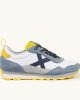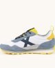 El modelo Um está creado para reinstaurar una de las siluetas inspiradas en el heritage más setentero de Munich en una lograda combinación de colores blanco, gris azulado y detalles en amarillo vibrante. Esta zapatilla cuyo perfil y diseño marcarán de nuevo un punto de inflexión en la tendencia del street style es la elección ideal para quienes buscan un calzado versátil que combine con looks casuales diarios o para largas caminatas urbanas donde el confort y el estilo retro son imprescindibles gracias a su estructura ligera y su cuidada mezcla de materiales.