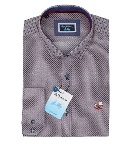 Camisa Semientallada Estampada La Vespita Burdeos y Marino